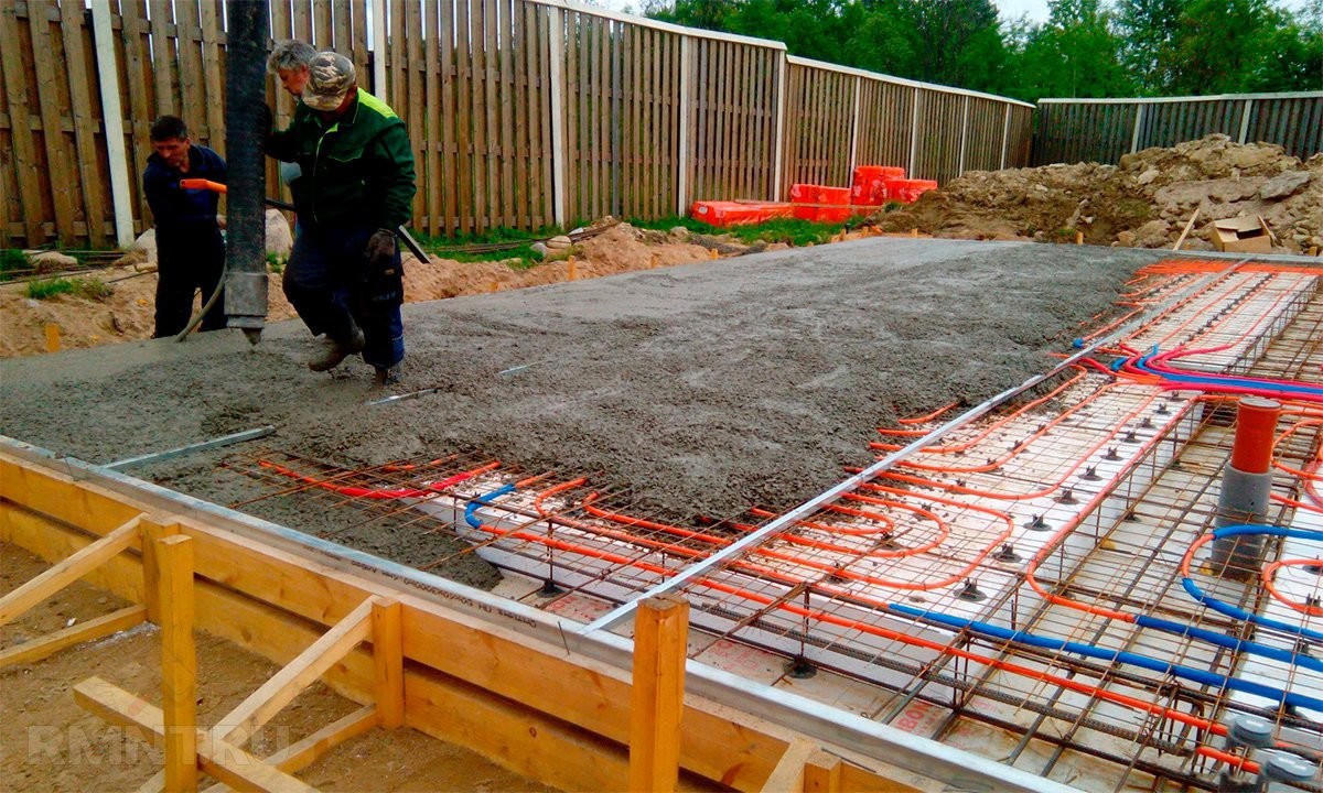 Установка УФФ фундамента требует заливку бетонной смеси. «Жидкие» работы желательно выполнять в тёплую погоду. В случае необходимости бетонирования в зимний период в состав добавляют пластификатор.